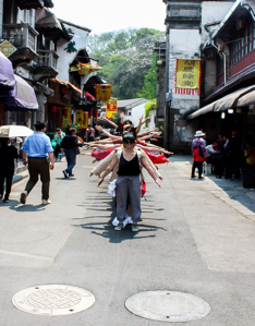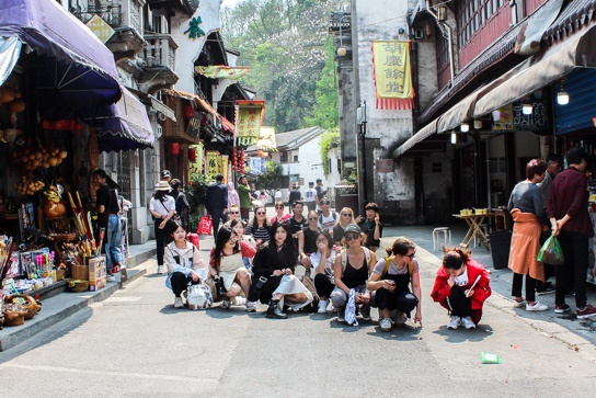 4月9日,中德学生共同前往河坊街感受中国古老文化与建筑的魅力并拍摄艺术照片,随后在西湖享受湖光春色并对自己利用T-恤完成的作品进行拍照。