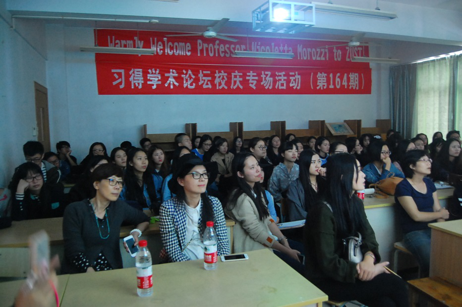 Nicoletta Morozzi教授在时尚、设计、艺术和传播领域工作多年,有着非常丰富的经验。她围绕东西方服饰文化的发展情况,结合自身对服饰文化的独特见解,对东西方服饰产业及文化价值做出了详细阐述。通过对意大利米兰新美术学院往届学生创新服饰作品的赏析,讲解服饰设计的要领,介绍服饰产业的发展前景,文化价值与服饰设计者所应具备的能力。鼓励服装设计专业学生,要注重服饰文化价值,有目标的进行专业学习。