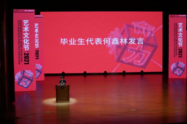 院长郑林欣教授致开幕辞,他代表学院向与会领导、嘉宾表示欢迎与感谢,对同学们四年以来的成绩做出了肯定。优秀校友代表陈建国先生发表了热情洋溢的讲话,以自身工作学习经验给在场学弟学妹们提供了宝贵建议,并祝愿即将毕业的同学们在未来的职业道路上能一帆风顺,祝愿母校越来越好。优秀毕业生代表何鑫林回顾了大学四年以来学习和生活的点滴,对母校与老师们表达了深深的感激和不舍之情,鼓励同学们在艺术的道路上勇敢前行,积极展望未来。