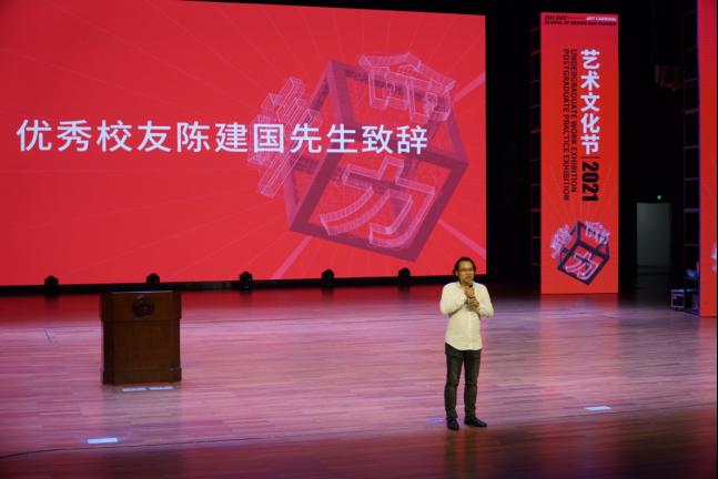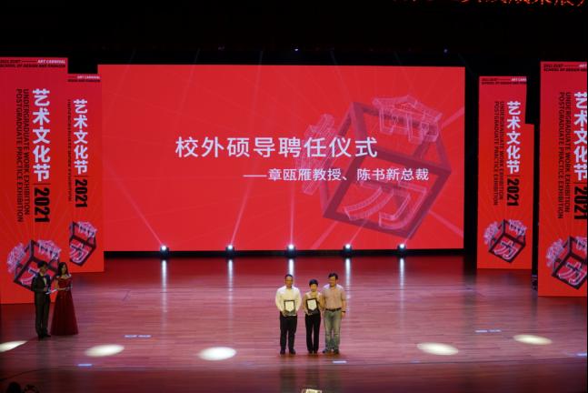 艺术文化节暨本科毕业展/艺术硕士研究生实践成果展在大学生活动中心(水晶剧院)隆重开幕。校党委书记龚建立,校党委委员、宣传部部长姜雯,党委研究生工作部部长、研究生院常务副院长侯北平,招就处处长葛龙威,团委书记戈洪伟,建德大慈岩镇副镇长杜立恒,优秀校友陈建国,校外硕导章鸥雁教授、陈书新总裁等应邀出席。学院党委书记詹俊、院长郑林欣、副院长吴春胜、党委副书记钟琴以及学院师生代表参加了此次开幕式。
