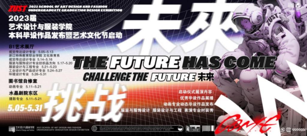 本届毕设主题为“挑战未来”,并选择在五四青年节期间开启,意在勉励毕业生们能够肩负起青年的时代使命与社会责任,在设计服务国家、人民的时代舞台上书写青春、绽放光彩,面向未来,时刻在社会、经济、文化、科技发展中勇立潮头,直面挑战,创造无限可能,迸发出年轻人的活力与朝气,向未来交出令人满意的答卷。