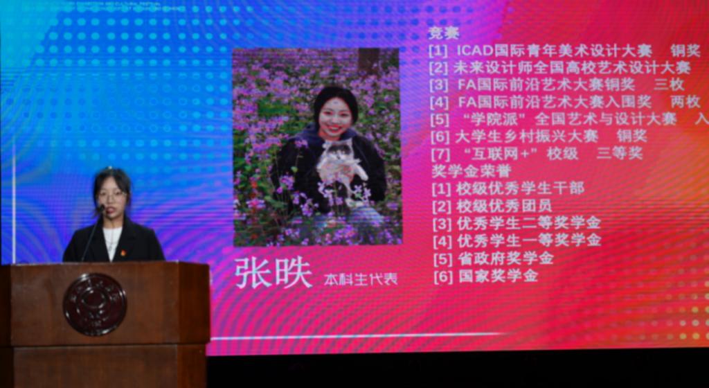 图 优秀本科毕业生代表张昳发言