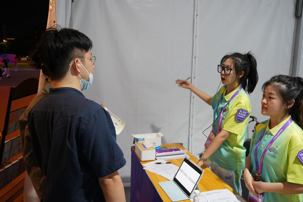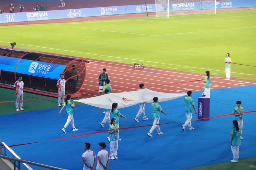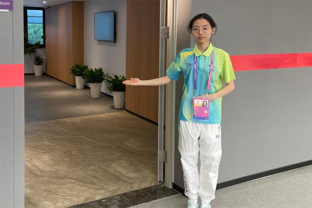 亚运赛事期间的黄龙体育中心体育场,来自艺术学院的58名“小青荷”身着青绿,在竞赛技术运行、礼宾接待、信息技术、观众服务等多个领域提供高质量的志愿服务,他们在奉献中展现亲和,用热情的微笑坚守岗位一线,书写亚运期间的青春篇章。默默坚守、暖心微笑、细致服务……第一次参与亚运会志愿服务工作,充满着未知。谈到亚运期间的场馆志愿服务经历,艺术学院服工211危盈霏激动地说:“有机会成为亚运会的赛会志愿者对我来说意义非凡。从一开始的有些手足无措,到后来通过我们的服务确保场馆礼宾区能够顺利运行。当听到大家对于我们志愿者工作的认可和赞扬时,我感觉所有的付出都是值得的。