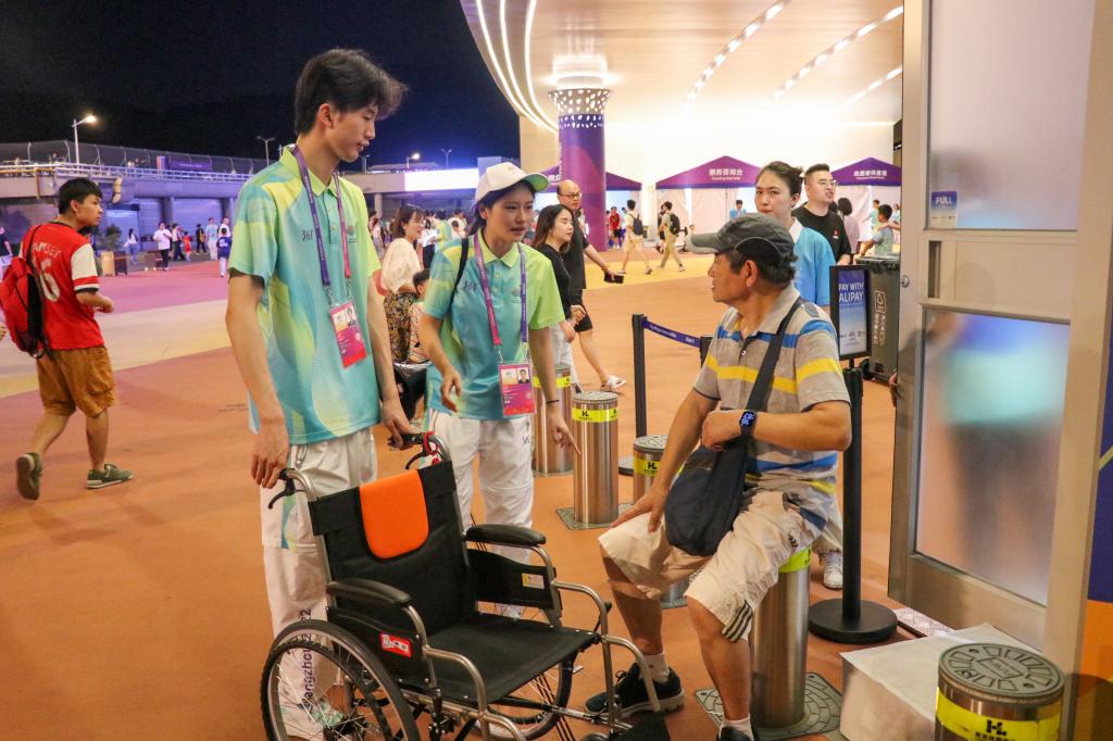 亚运会馆的志愿者身影