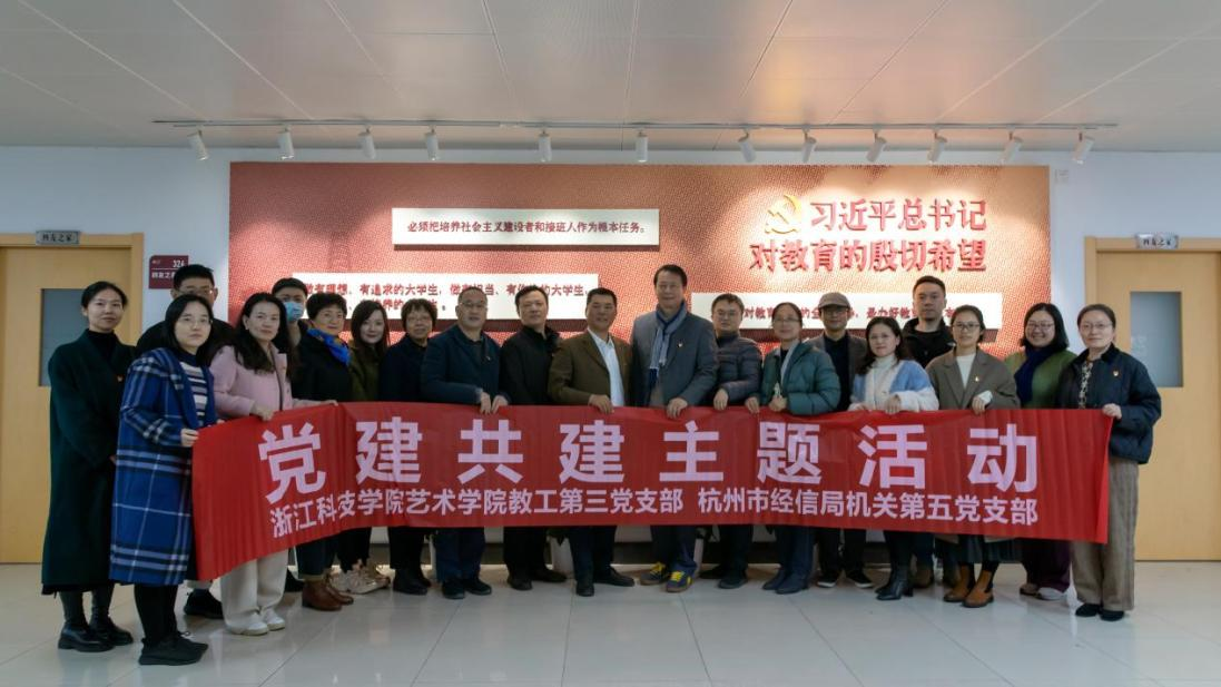11月30日下午杭州市经信局机关第五支部的领导和党员一行13人来我校艺术学院参加支部共建活动。校科技处处长马伟峰、艺术学院党委书记詹俊,院长郑林欣、教工第三党支部党员,以及其他教工支部代表参加了共建活动。