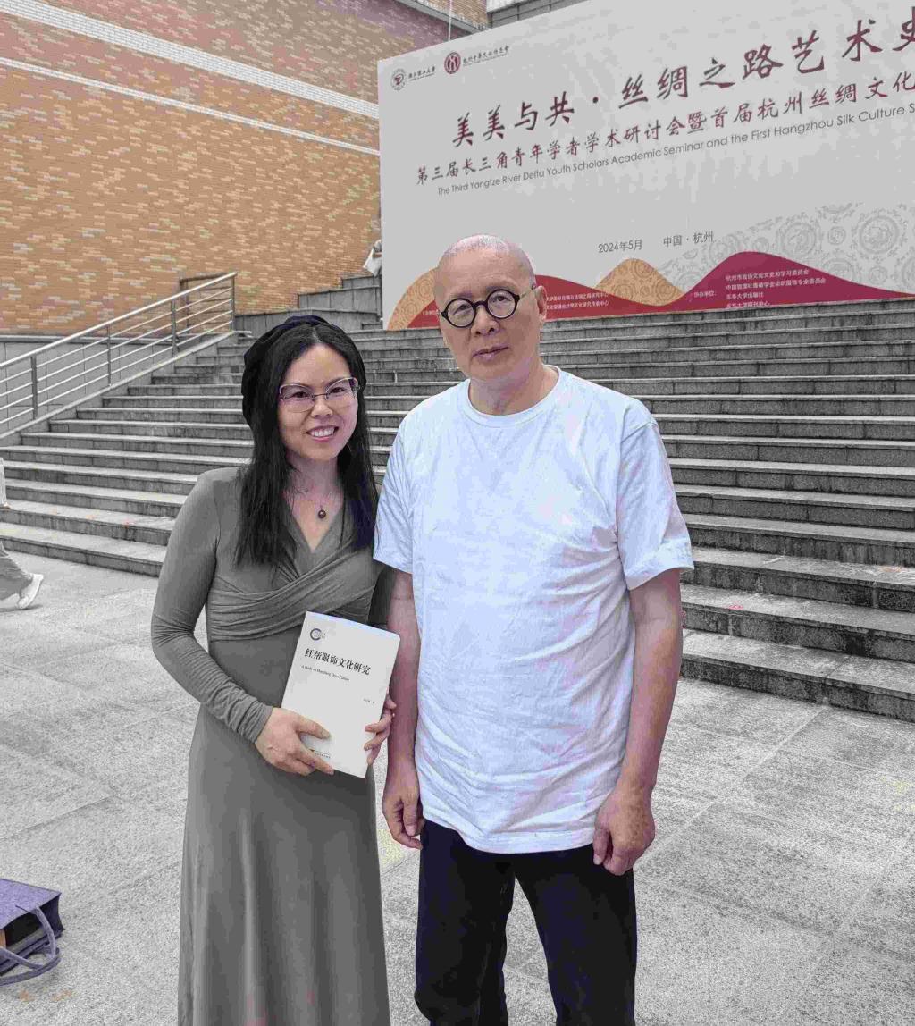 刘云华教授与东华大学服装艺术设计学院资深教授包铭新交流合影