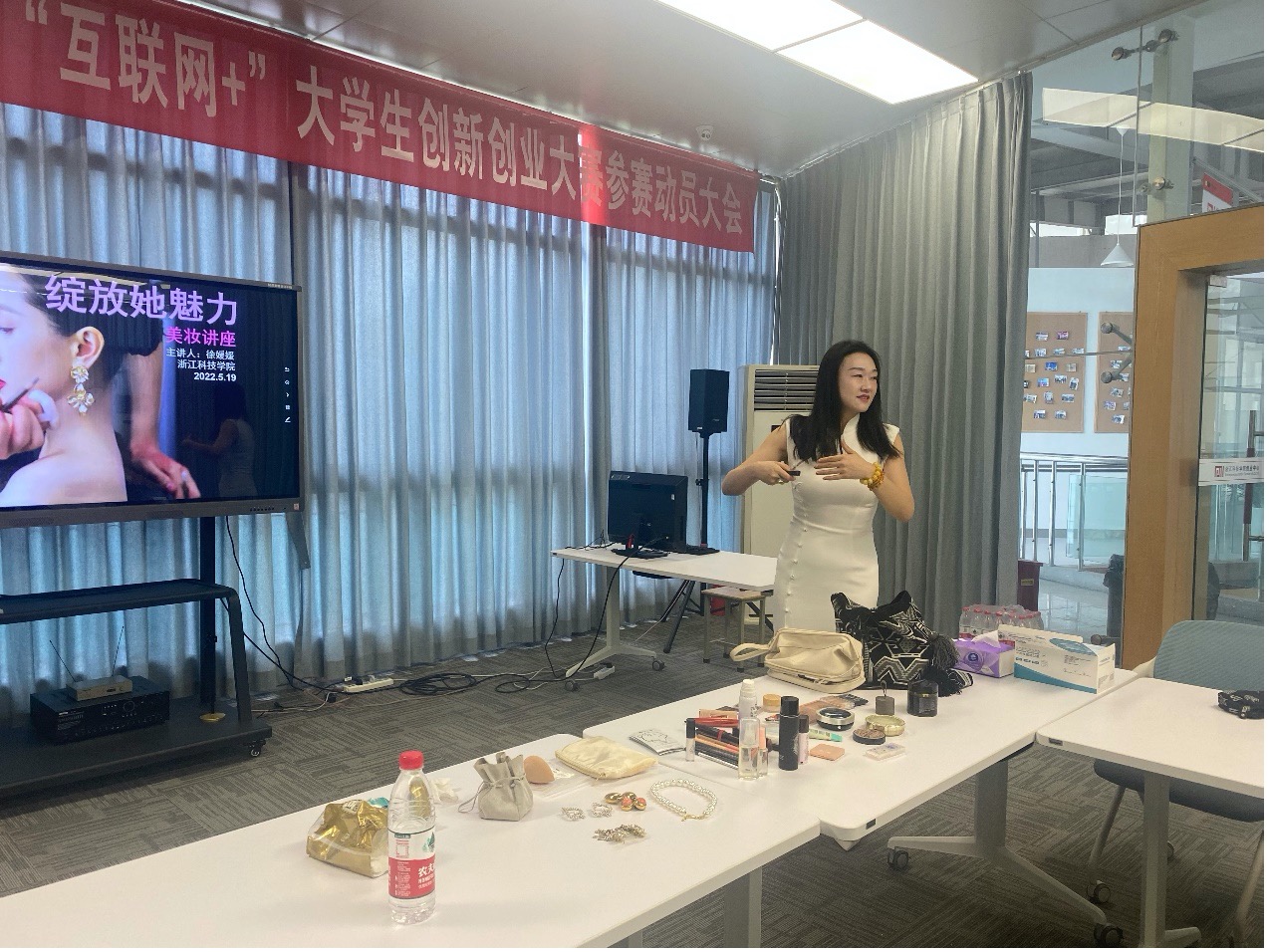 服装设计专业的徐媛媛老师为科院带来了一场名为“绽放她魅力”的美妆讲座。本次活动旨在丰富女教工的美妆知识,塑造女教工典雅、稳重、干练的职业形象,使巾帼文明岗职业女性每天心情愉悦、容光焕发。